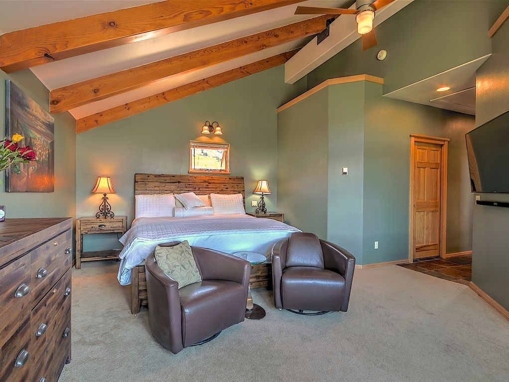 This impressive mansion is provided with all comforts and luxuries, from steam shower, Jacuzzi for 7, Jura espresso machine, a PC and printer, 5 bedrooms sleeping up to 8 (County restricts advertising occupancy to 8 adults, yet up to 14 guests at a time enjoyed this house for years without incident. It has sleeping arrangements for 14 so you have a choice of beds), patios, large living room, dinning room, fully equipped kitchen, fireplace, fire pit, inside and outside dinning, library of books and movies, fast WiFi throughout, Sonos, 6 large screen HD TV sets with xFinity X1, spotting scope and stabilized binoculars to explore the mountains from your living room, board games, humidifiers, you name it!