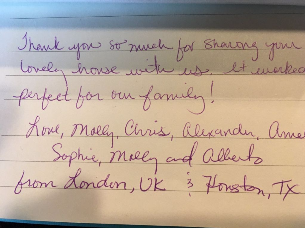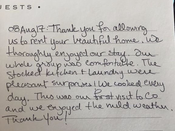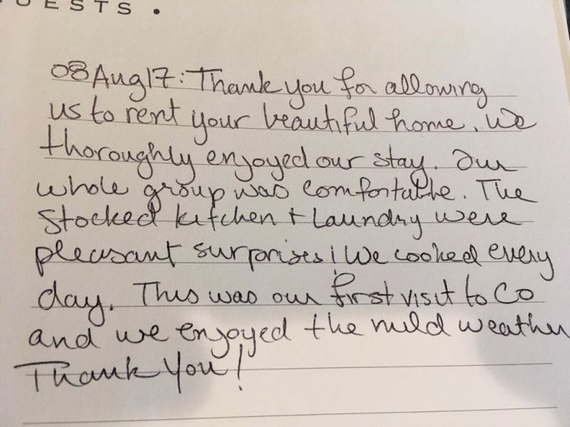 There will be a welcome letter containing all other home information when you arrive.